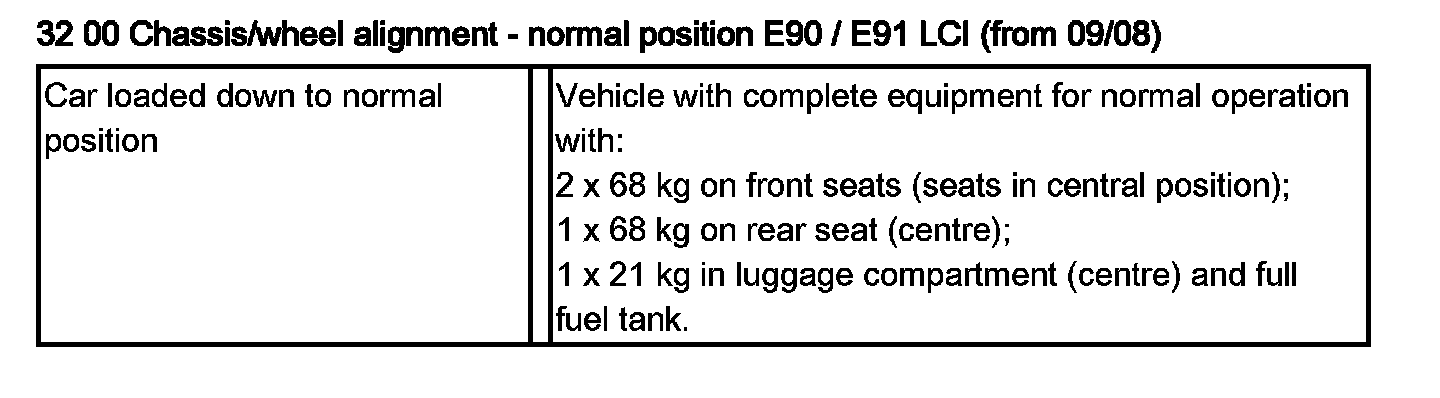 32 00 Chassis/Wheel Alignment - Normal Position E90, E91 / LCI (from 09/08)
