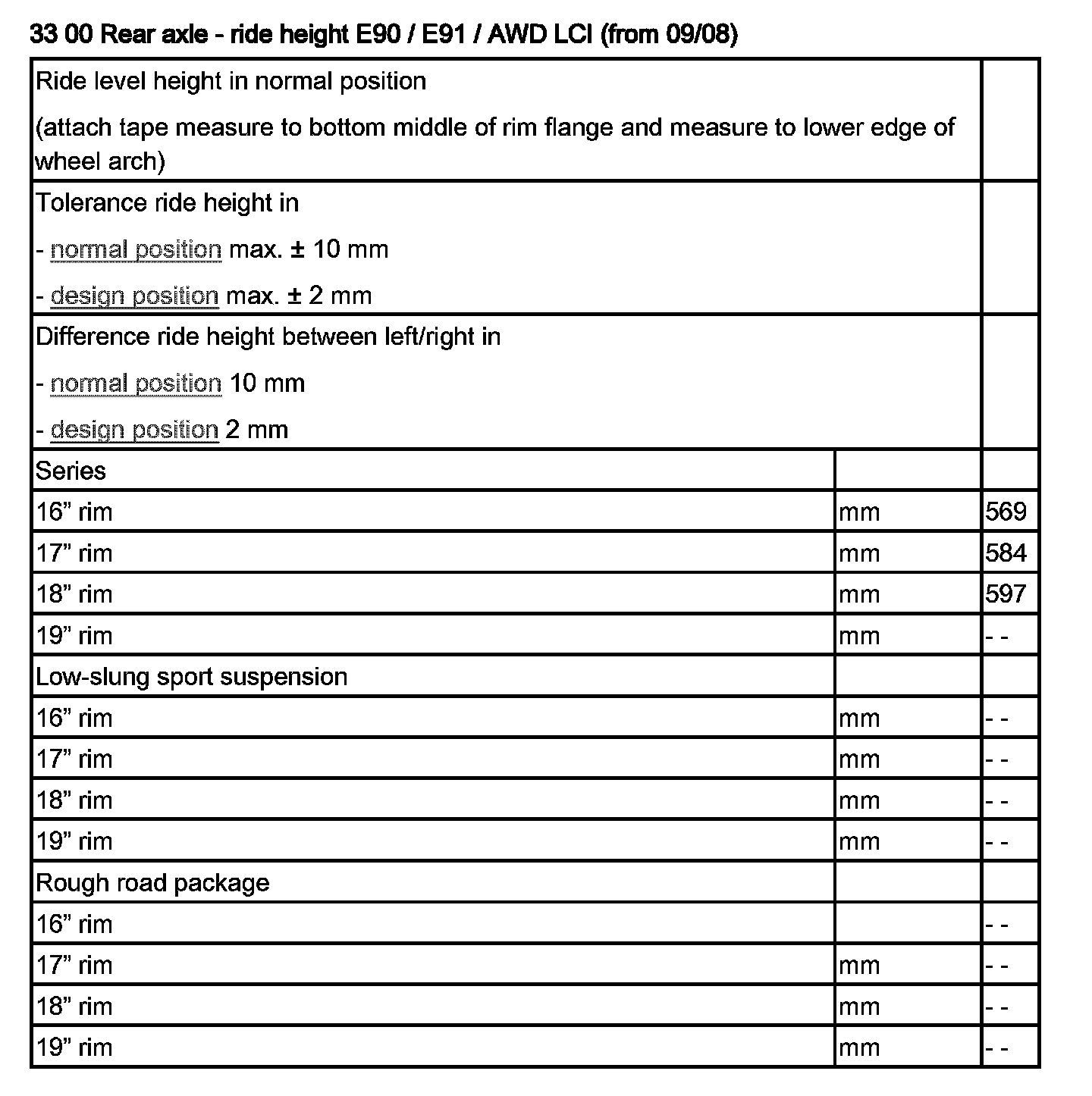 33 00 Ride Height E90, E91 / AWD / LCI (from 09/08)