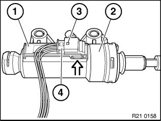 Lever out clutch switch module (1) from clutch master cylinder (2) with screwdriver.