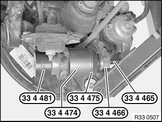 Pull out and remove ball joint with special tools 33 4 465, 33 4 466, 33 4 475, 33 4 474 and 33 4 482.