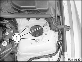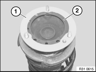 Release nuts (1) and remove spring strut with swivel bearing towards bottom.