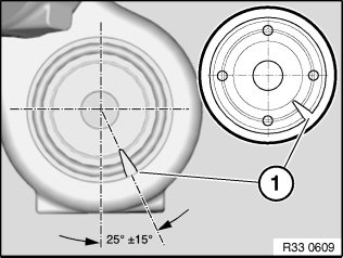 Align rubber mount by way of slot (1) at an angle to wheel carrier.