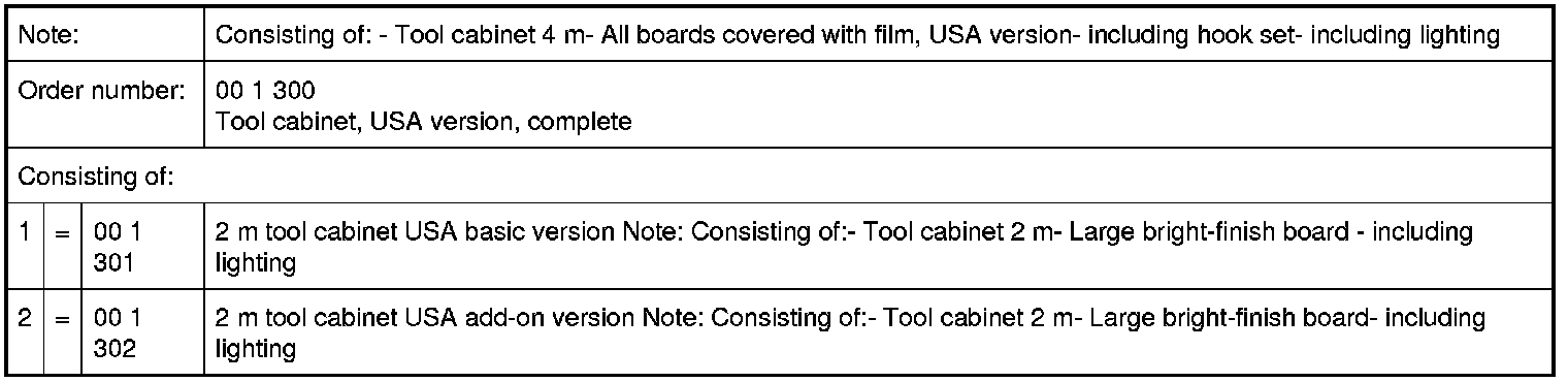00 1 300 Tool cabinet, USA version, complete