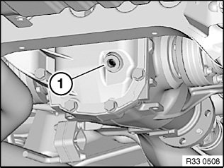 Pour in final drive up to lower edge of opening for screw plug (1).