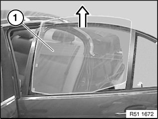 IMPORTANT: Disconnect plug connection (1) from power window motor (2) (risk of trapping).