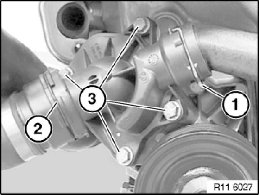 11 53 000 - Removing and installing / replacing coolant thermostat (M57T2)