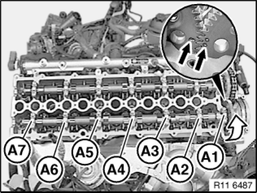 The exhaust camshaft bearing covers are marked A 1 ... A 7 from the exhaust side.