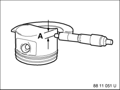 Before installation, measure piston installation clearance. Measure piston diameter with micrometre at measuring point A from lower edge of piston and offset at 90°to the axis of the gudgeon pin.