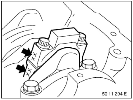 Connecting rods and bearing caps are designated with the same matching number: do not mix them.