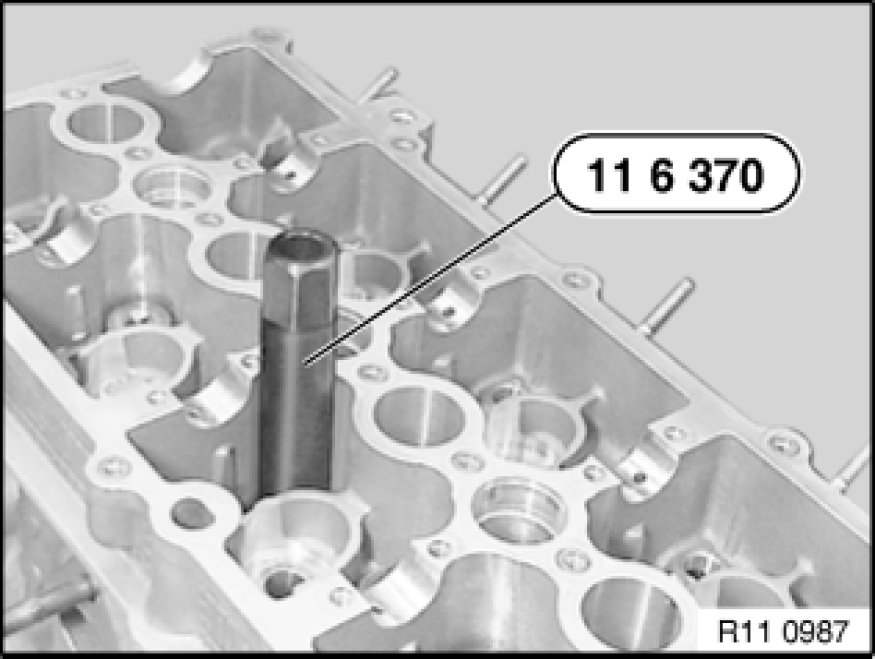 Remove special tool 11 6 370 together with valve stem seal.
