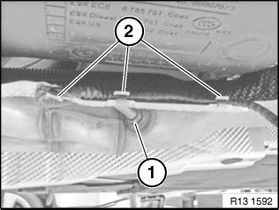 Release thermal protection (1) (2) and slide until nitrogen oxide sensor holder is accessible.