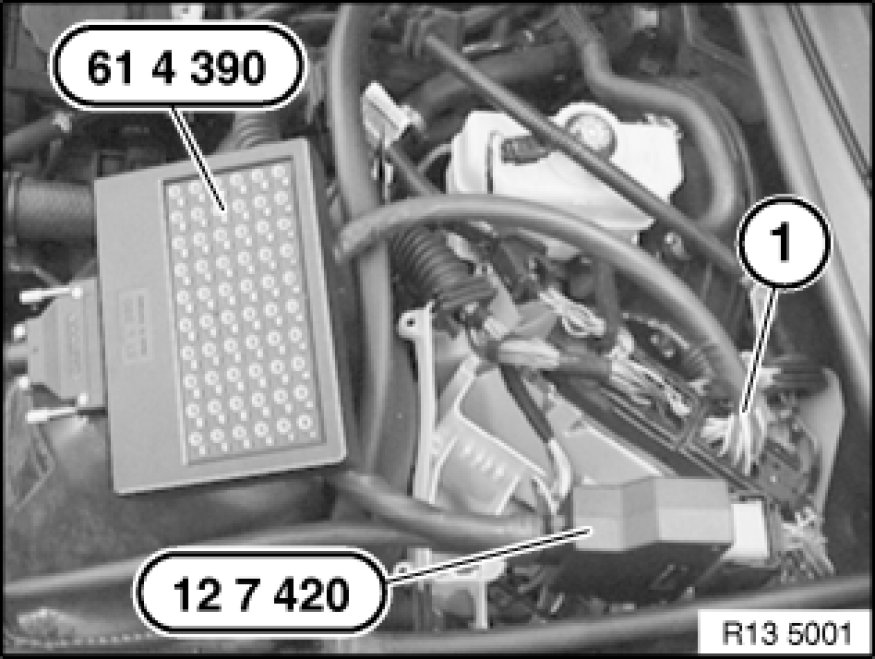 Connect special tools 12 7 420 and 61 4 390 61 4 390 Measuring Box, 60-Pin to control unit plug (X2412).