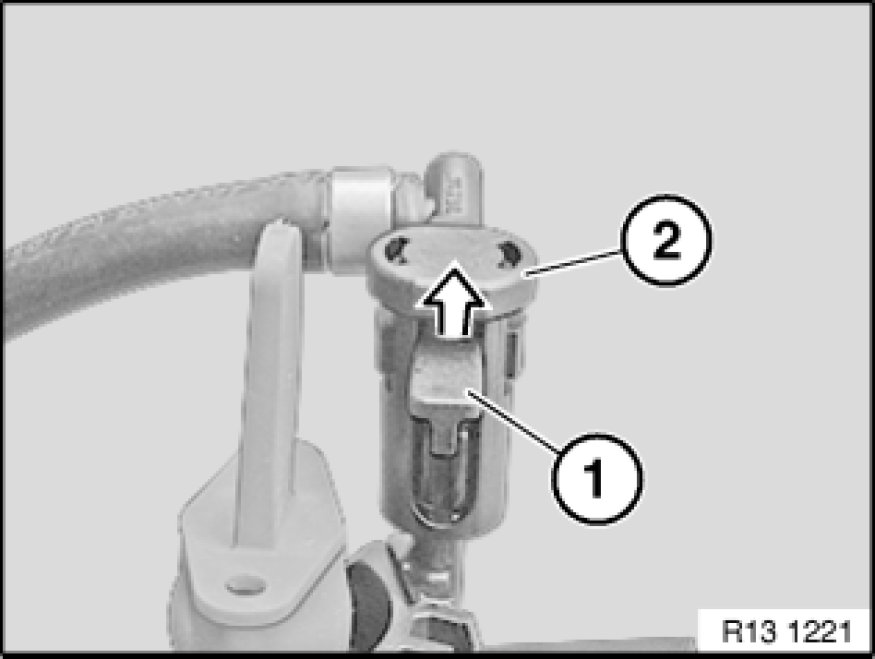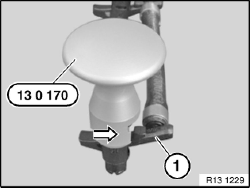 Push special tool 13 0 170 13 0 170 Puller in direction of arrow onto connection (1).