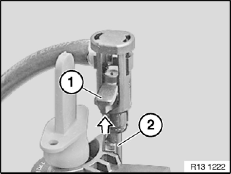 Release lock (2) with special tool 13 0 170 13 0 170 Puller in direction of arrow.