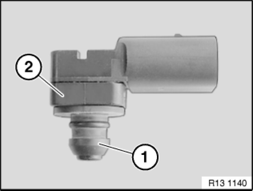 Replace sealing ring (1) on charge-air pressure sensor (2).