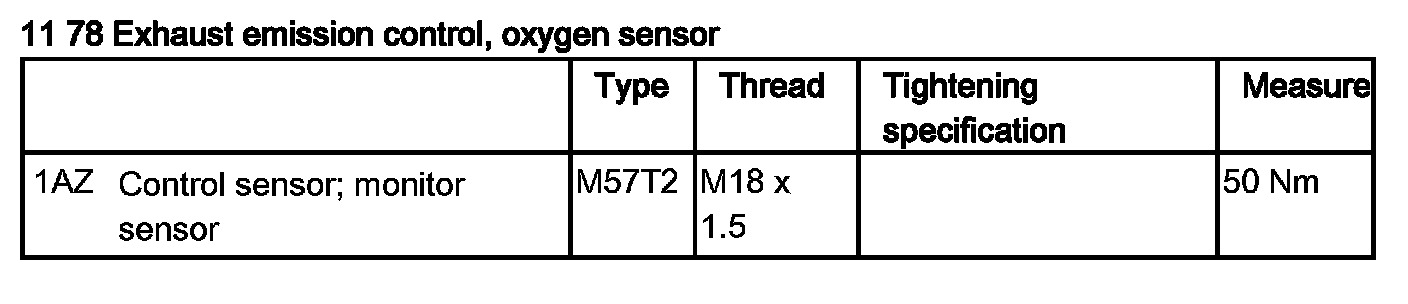 11 78 Exhaust Emission Control, Oxygen Sensor