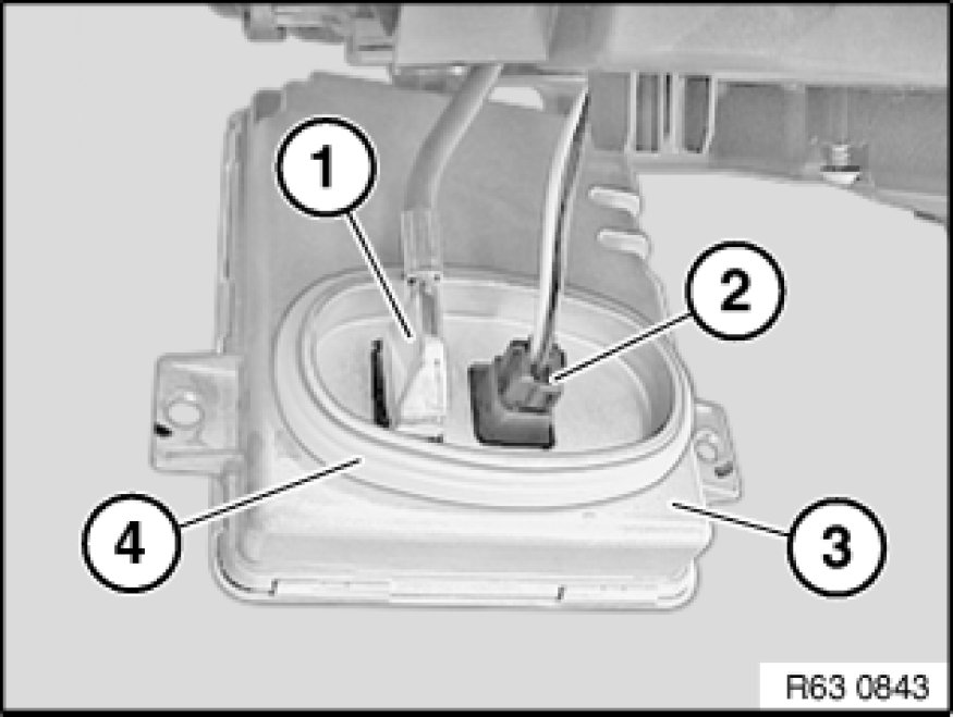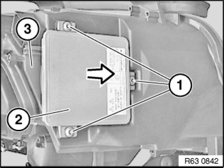 Release screws (1). Tightening torque 63 12 4AZ [1][2]Headlamp.