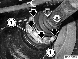 33 21 000 Removing and installing/replacing left or right output shaft (on 2-flow exhaust system)Remove rear wheel.