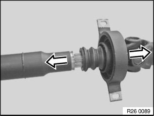 The propeller shaft is balanced. The front and rear propeller shafts must be reassembled in the same position.