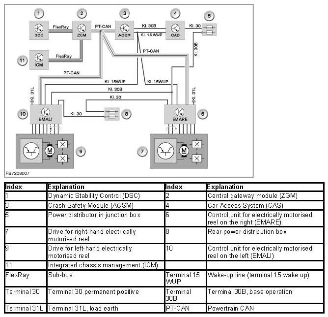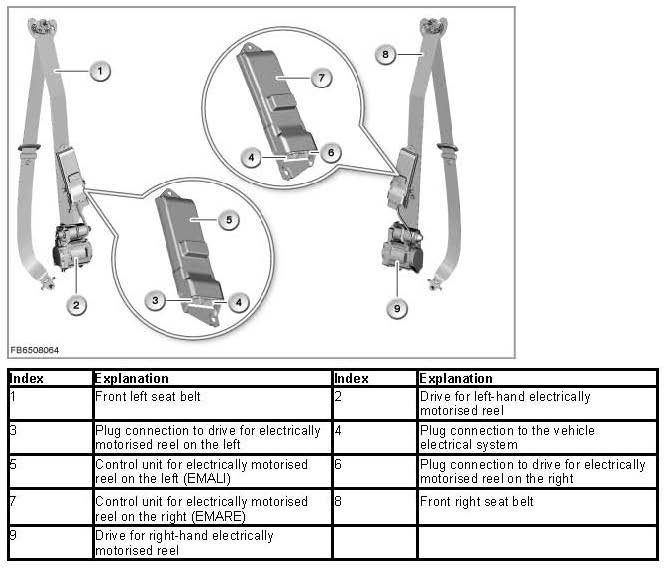 - Fault code memory entry in the control unit for inertia reel mechanism on the left (EMALI control unit) or control unit for inertia reel mechanism on the right (EMARE control unit)