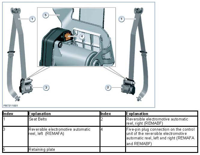 The following graphic shows the reversible electromotive automatic reel and the seat belt.