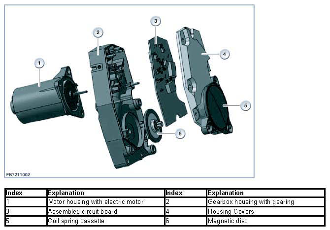 There are two hall effect sensors on the circuit board which detect the rotational movement of a magnetic disc. The magnetic disc is integrated into the housing of the control unit and is driven by the coil of the automatic reel. This monitors the pullout of the seat belt. The direction of rotation of the electric motor can be changed through a corresponding activation via the control unit.