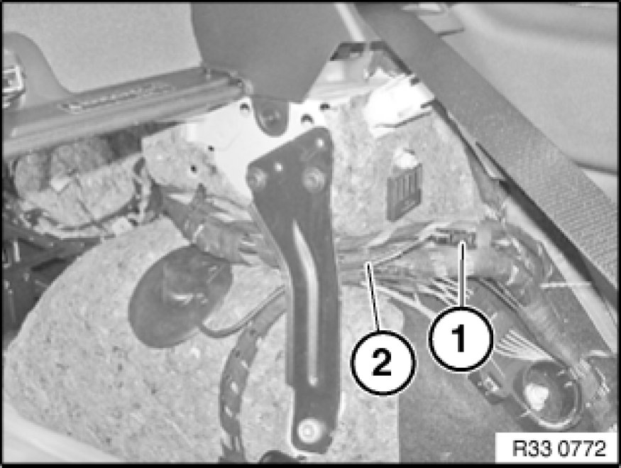 Disconnect plug connection (1) and expose adapter lead (2) up to shock absorber.