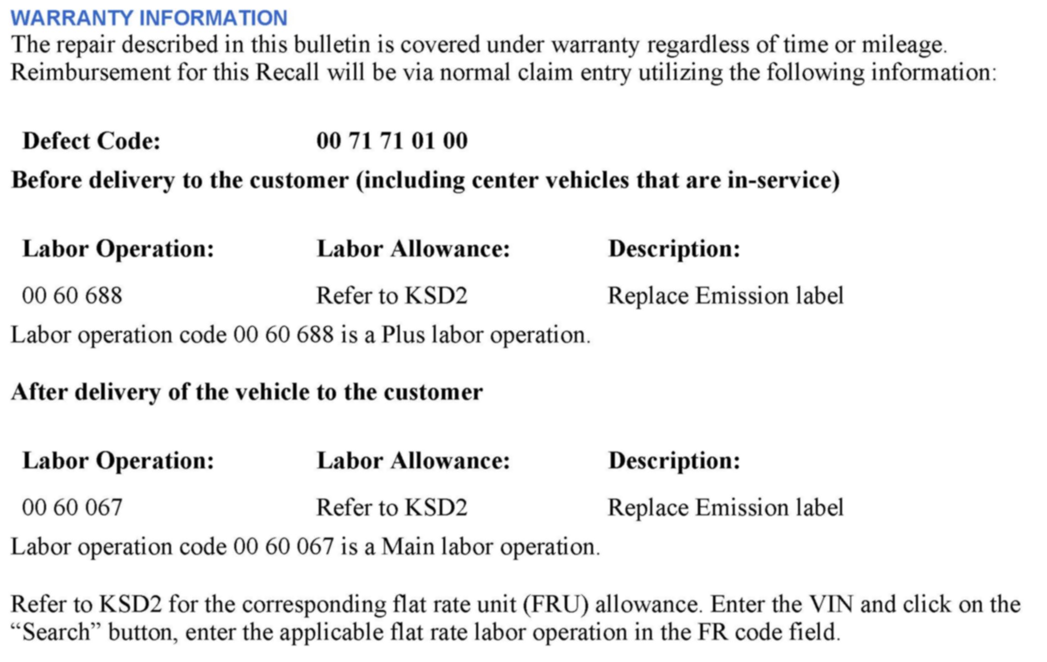 Voluntary Emissions Recall Campaign 11E-A04: Replace Emissions Label