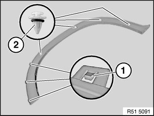 Partially release wheel arch cover on left and right in area of bumper panel.