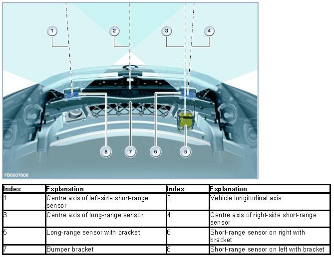 - On replacement of a short-range sensor, observe the exact installation position: in accordance with the repair instructions. Adjustment of the kind required for the long-range sensor is not required. Instead, the new sensor's installation angle must be stored in the ICM control unit: Use the corresponding service function.