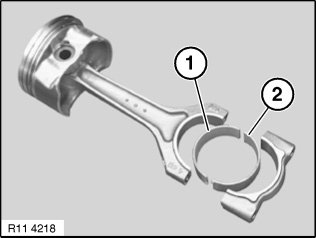 In each case insert only one colour of connecting rod bearing shell (1 and 2) for each connecting rod.