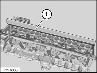 Check evenness of cylinder head lower faces with a standard straightedge (1).