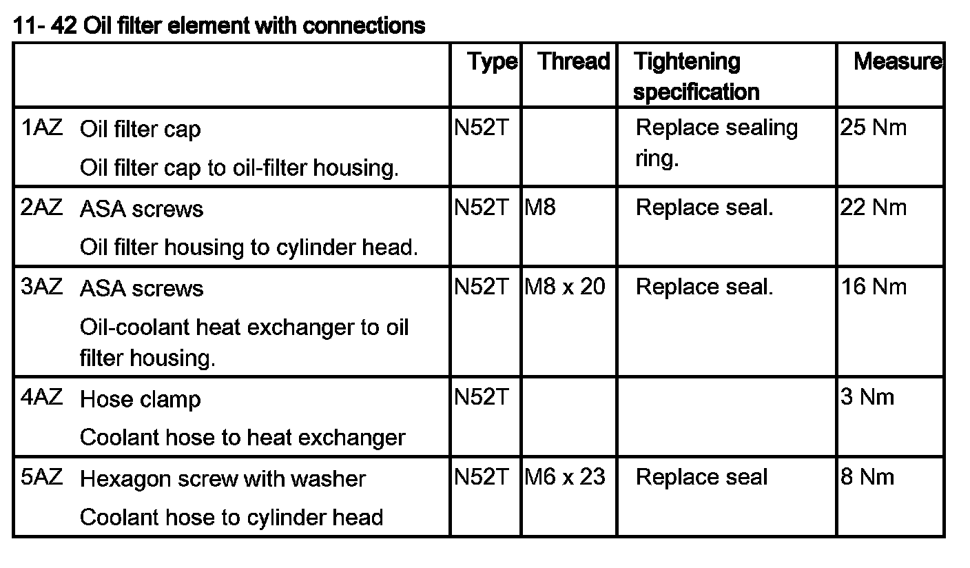 11 44 000 Removing and installing/replacing oil-to-water heat exchanger (N52T)Warning!
