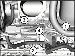 Unlock hose (3) on intake plenum and detach.