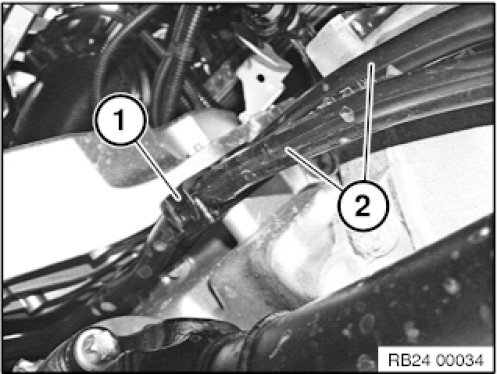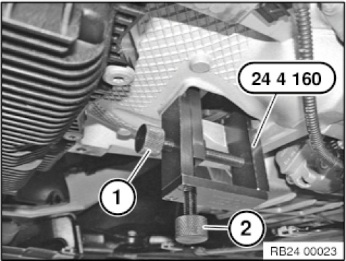 Prepare special tool (1) 24 4 161 (A) with shaped element (2) 24 4 166 as pictured.
