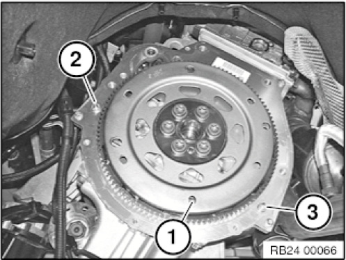 Bore hole (1) of driving plate must be accessible from recess on engine oil sump.