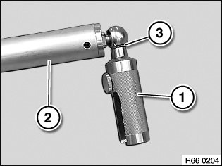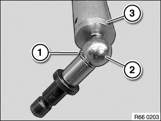Fit new ball pin (1) on rod (2) and secure with retaining clip (3).
