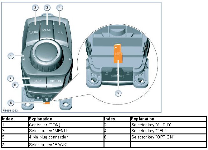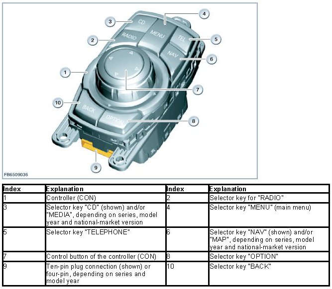 The graphic below shows the controller for the example of the basic version (optional equipment SA663 "Radio BMW Professional").