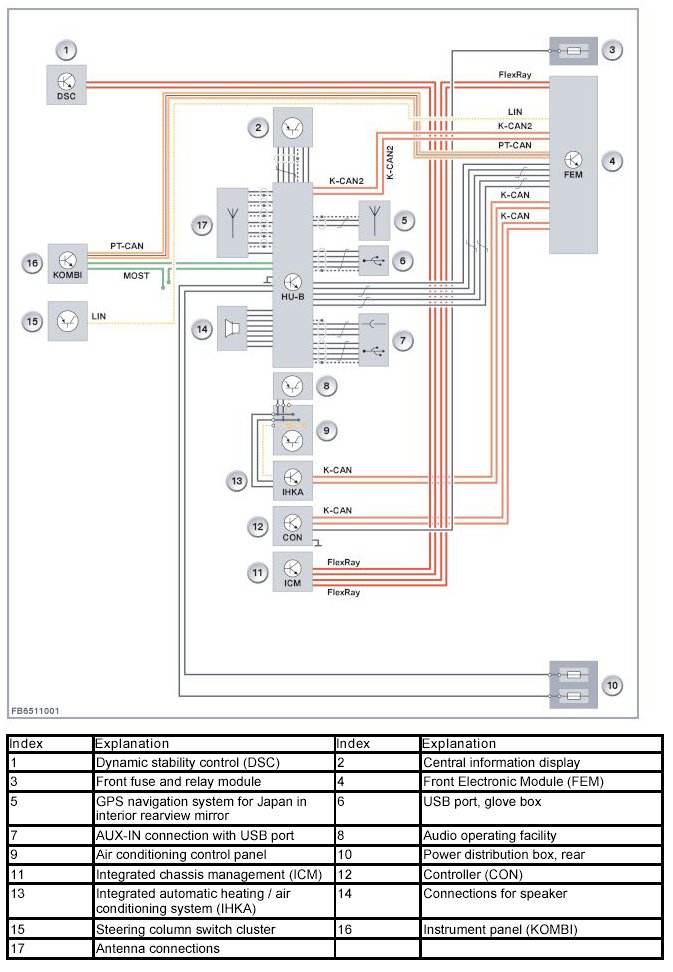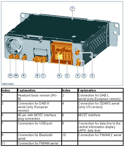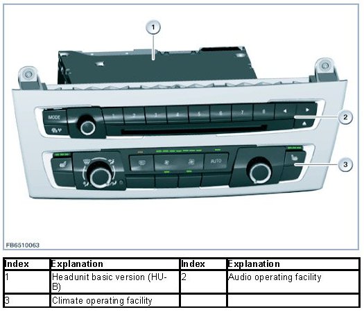The HU-B control unit is used as a headunit. The headunit basic version is the headunit in the MOST network.