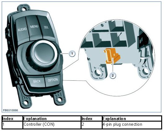The controller is the central operating element for the vehicle functions that can be selected and configured on the central information display. The control panel and control unit of the controller (CON) have been combined in one single component. There are 5 fixed selector keys arranged around the controller. These selector keys now enable selection of half of all the submenus.