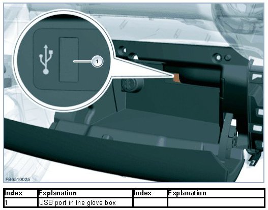 The AUX-IN connection with USB port (SA6FL USB audio interface) is available as optional equipment. External audio sources with a USB port are integrated into the entertainment system of the vehicle via this USB audio interface.