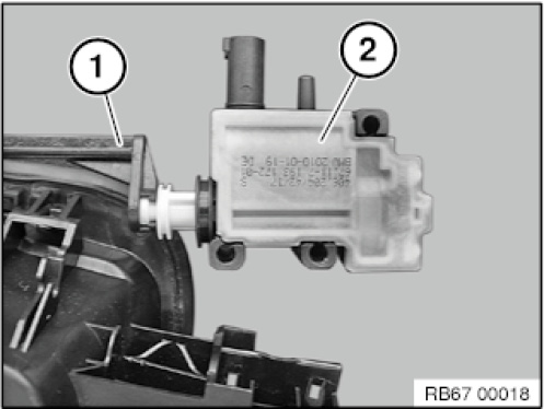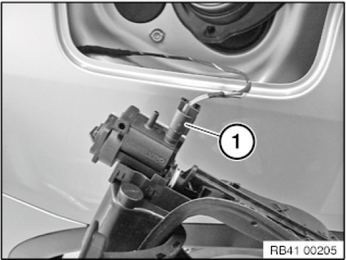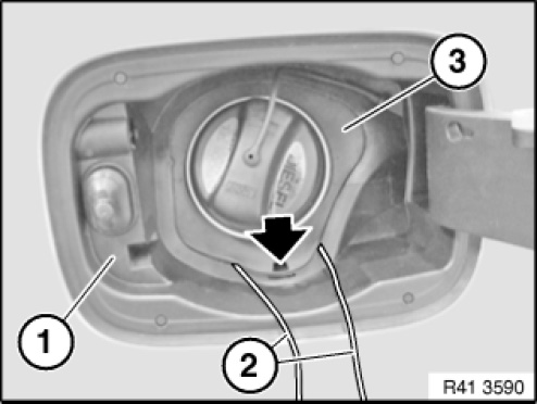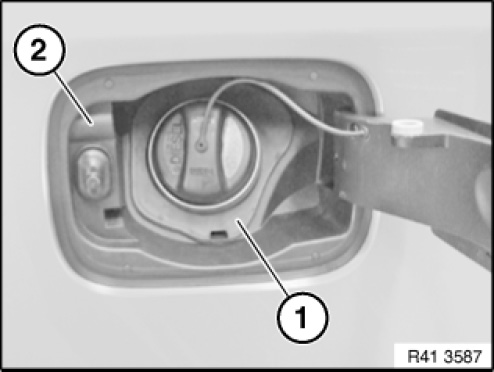 Make sure the setting for the actuator drive (2) for the fuel filler flap is correct. It must be possible to lock or unlock the fuel filler flap completely.