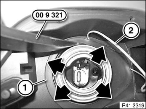 Press rubber cup (1) into groove with special tool 00 9 321.