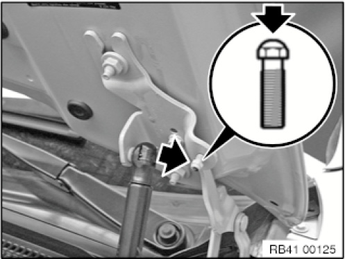 The stop screw is preset and must not be used to adjust the engine compartment lid.