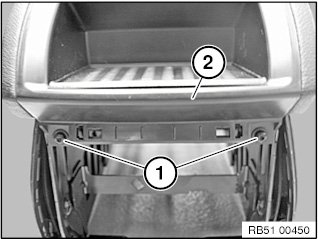 Using special tool 00 9 325 lever out storage compartment at top rear (1) and pull back to detach.