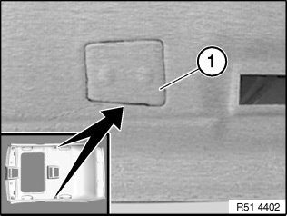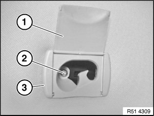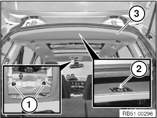 - Fold away headliner (1) towards bottom right and remove through rear lid opening.