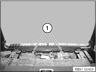 Release screws (1) on left/right.