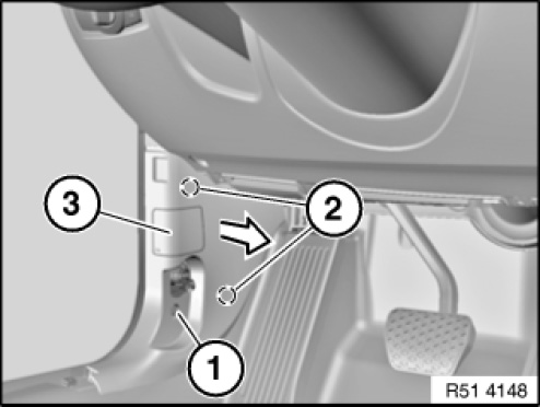 If necessary, disconnect associated plug connection and remove side trim panel (3).