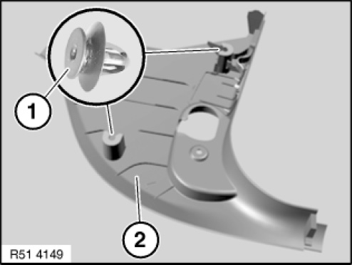 Unclip side trim panel (3) in direction of arrow from retaining points (2).
