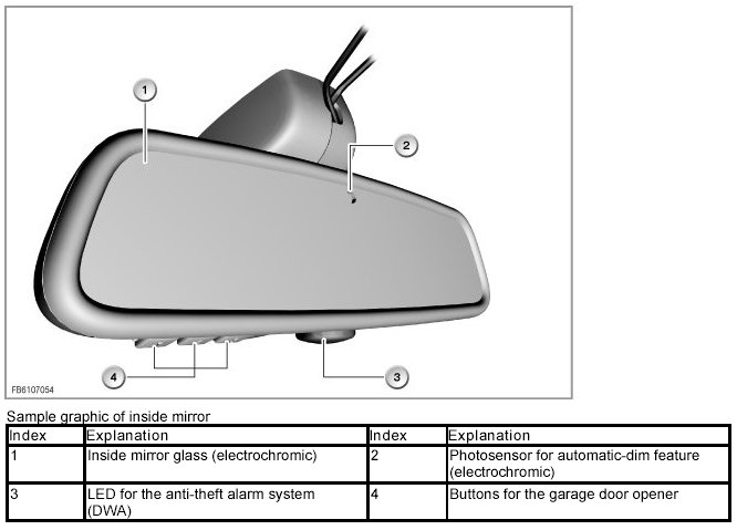 Depending on the equipment specification, various system functions are available for the inside mirror. The following system functions are described: